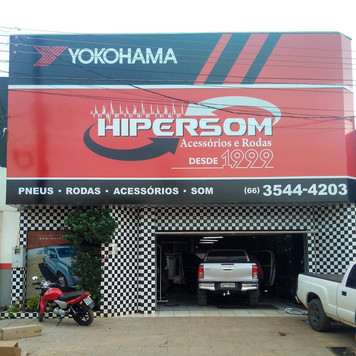 A Hipersom Acessórios e Rodas atua no setor automotivo desde 1º de outubro de 1999, sendo referência em Sorriso, Mato Grosso. Localizada na Rua Genésio Roberto Baggio, 545, no Centro Sul (CEP 78896-050), a empresa se especializa em acessórios automotivos como pneus, rodas, engates, capotas, som automotivo e uma linha completa de itens para personalização e manutenção de veículos, especialmente para picapes.